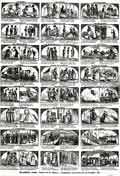 La aleluya es un pliego de papel impreso por una cara que contiene un conjunto de viñetas -generalmente cuarenta y ocho- en cuyo pie suelen aparecer unos versos que aluden a la escena representada. Aunque pueden entenderse como un género propio de la estampa popular, constituyendo una fuente de singular interés para el estudio de la imagen gráfica en general, no debemos de olvidar que, a su vez, constituyen primitivas formas de lectura con imágenes, directamente emparentadas con los pliegos de cordel y destinadas sobre todo a un público infantil o iletrado.