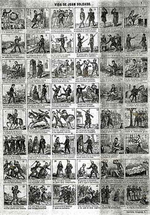 Viñetas: 48; 3.6x4.3; -TF- Formato: Pliego; Vertical. Técnica: Xilografía Imprenta: Imprenta, Colegiata, 6. (nº5) Tipo: Narraciones Tema: Biografía Fecha: h. 1865 ? Autor/es: Grabador: SEM [en viñeta 46] Bibliografía: Grabador: SEM [en viñeta 46] Notas: Sem fue el seudónimo con el que firmaron en diferentes ocasiones los hermanos Gustavo y Valeriano Domínguez Bécquer sobre todo en sus colaboraciones en el periódico Gil Blas. Algunos estudiosos han ampliado la autoría de ese seudónimo a otros dibujantes como Ortego. Localización: -AMC-