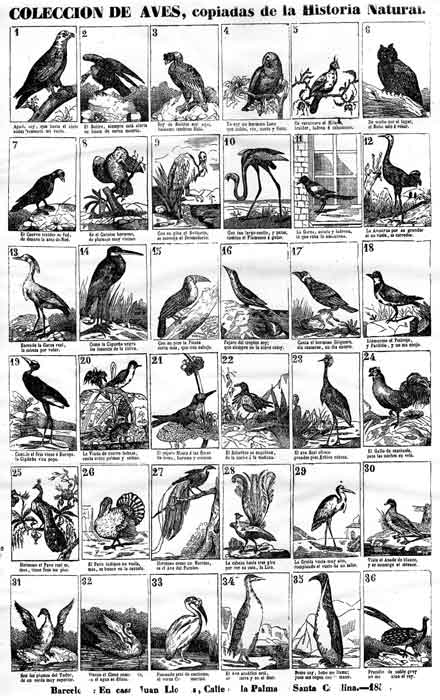Viñetas: 36; 5,6x3,9; -TF- Formato: Pliego; Vertical. Técnica: Xilografía Imprenta: Barcelona: En Casa Juan Llorens, Calle de la Palma de Santa Catalina Tipo: Historia Natural Tema: Ciencia Fecha: 185? Autor/es: Bibliografía: Notas: Localización: -AMC-