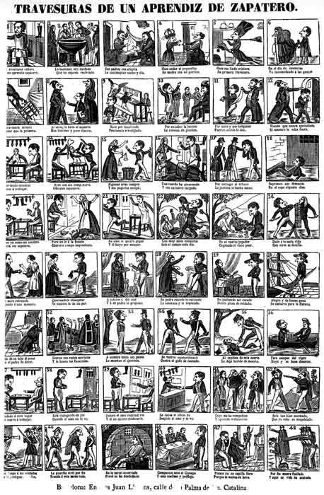 Viñetas: 48; 4x4; -TF- Formato: Pliego; Vertical. Técnica: Xilografía Imprenta: Barcelona: En casa de Juan Llorens, calle de la Palma de Sta. Catalina. Tipo: Narraciones Tema: Historias Fecha: Autor/es: Bibliografía: Notas: Localización: -AMC-