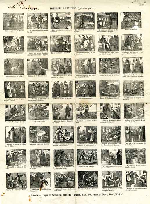 Viñetas: 48; 3.2x4; -TF- Formato: Pliego; Vertical. Técnica: Xilografía Imprenta: Madrid: Librería de Hijos de González, calle de Vergara, 10, junto al Teatro Real. Tipo: Narraciones Tema: Historia Fecha: Autor/es: Bibliografía: Notas: Localización: -FJD-