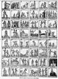 Viñetas: 48; 4,6 x 4,8 -TD- Formato: Pliego; Vertical Técnica: Xilografía Imprenta: Tipo: Procesiones, desfiles y panoramas Tema: Religión Fecha: 1807 Autor/es: Bibliografía: Notas: Segunda parte del número anterior Localización: -FJD-