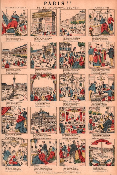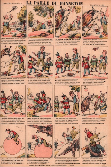 Viñetas: 13 variadas; TF; Formato: Pliego Vertical Técnica: Xilografía coloreada Imprenta: Imagerie de Pont-a-Mousson Marcel Vagne, imprimeur Editeur. Nlles Images Artistiques aux armes de France. Planche n. 1381 Tipo: Escenas Tema: Literatura - teatro Fecha: Autor/es: Bibliografía: Notas: En un Album d’Images. original Localización: Colección Martínez Leis -FJD-
