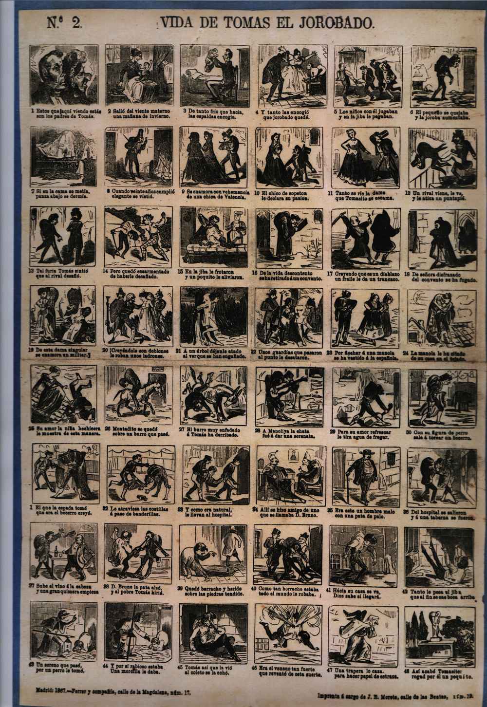 Viñetas: 48; 3,6 x 4,2; TF; Numeradas Formato: Pliego Vertical Técnica: Xilografía Imprenta: Madrid: Despacho calle de Juanelo, núm 19(Núm. 88) Tipo: Escenas Tema: Icononografía - narraciones Fecha: Autor/es: Bibliografía: Notas: Reproducción digital. Archivo Histórico de Barcelona Localización: Colección Martínez Leis -FJD-