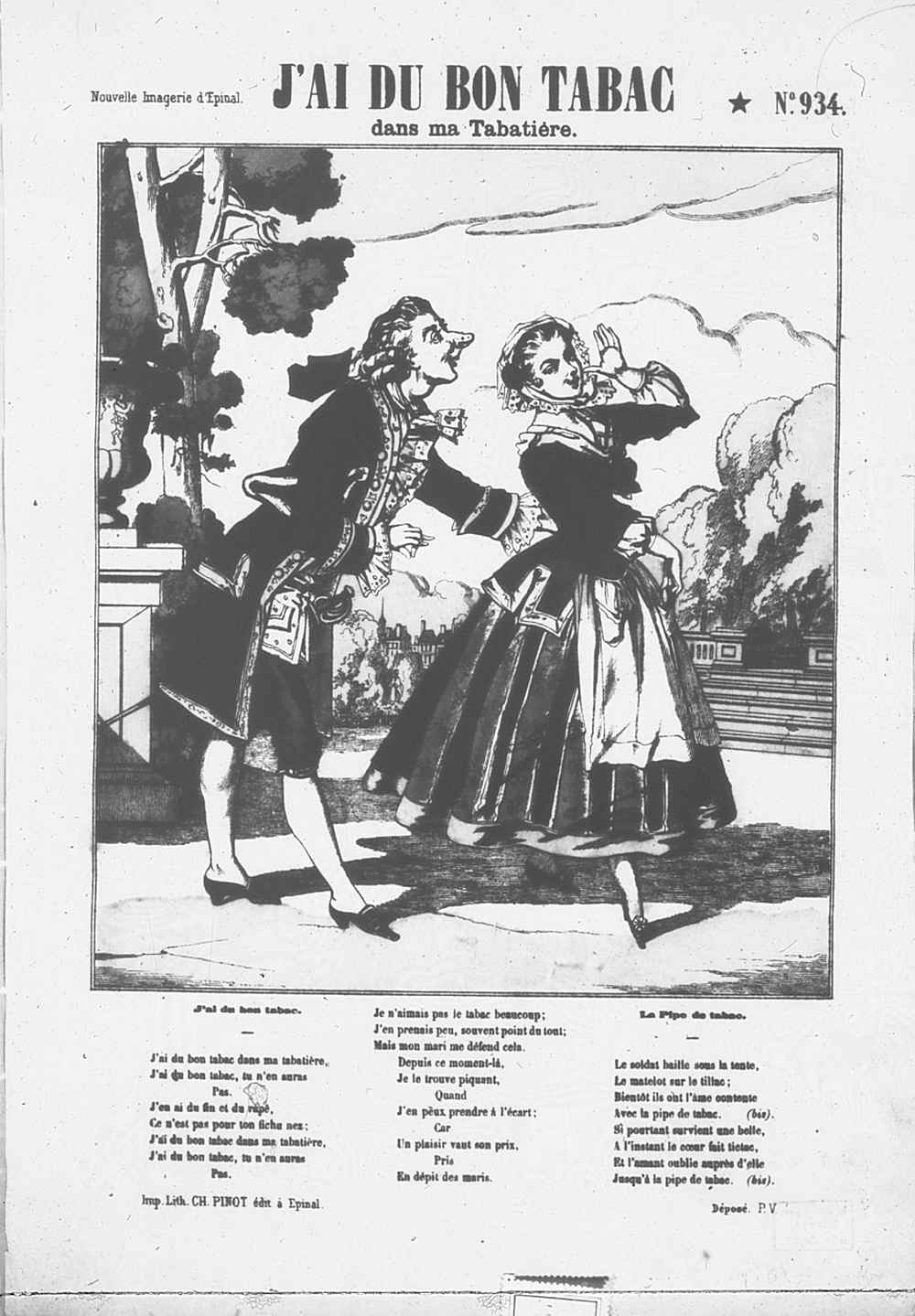 Viñetas: 14; varias medidas; -TF-Incipit: J’ai du bon tabac dans ma tabatière / j’ai du bon tabac, tu n’en auras pas.