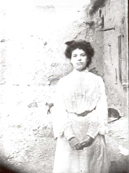 Fotografía de hombre y niño en el campo / máquina de segar la mies