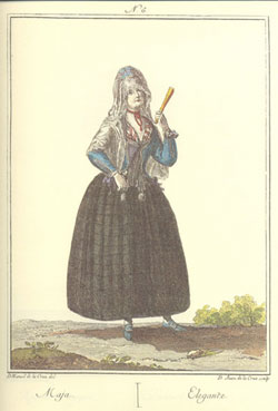 En segundo lugar, algunas de estas piezas pertenecen a libros de extranjeros que viajaron por España durante el siglo pasado; los grabadores (incluso los dibujantes) no siempre tenían esa suerte o, si la tenían, realizaban primero un boceto que después completaban en casa, pero ultimando detalles (adornos, alhajas, etc.) de memoria, lo que, a veces, convierte esos datos que podrían ser preciosos en una especie de caprichoso juego de azar con bastante riesgo para quien los use sin conocer perfectamente su procedencia.