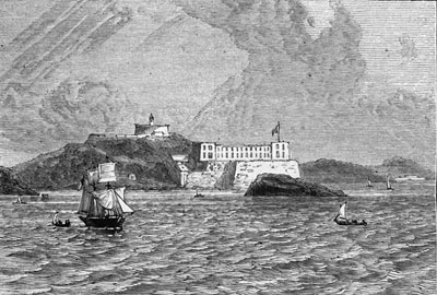 Título: Africa Occidental. Guerra de los Ashantees. Vista de la casa del gobernador, en Cape Coast Castle