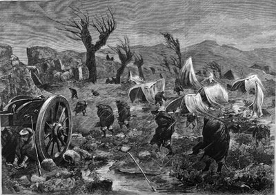 Título: Campamento de las carreras durante los últimos temporales de lluvia y viento. (Cróquis tomado sobre el terreno en la madrugada del 12 del actual)