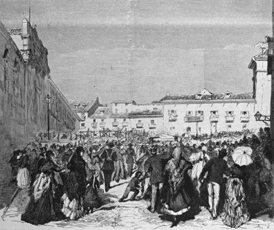 Título: Madrid. Conducción del general Primo de Rivera a su domicilio. (Cróquis tomado desde la plaza de los Ministerios