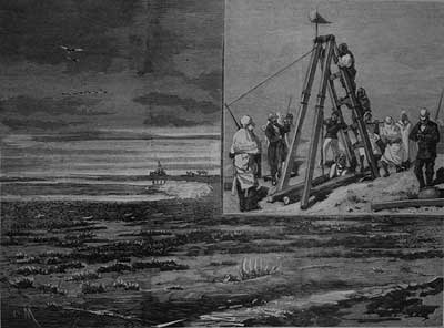 Título: Proyecto de mar interior en África. Gabés (Túnez). Vista de la embocadura del Oued - Melah, y del aparato de sonda empleado por el comandanta Roudaire