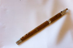 Descripción: Tiene la forma y ornamentación clásica del chiflo leonés. Está barnizada y tiene una pieza circular de metal