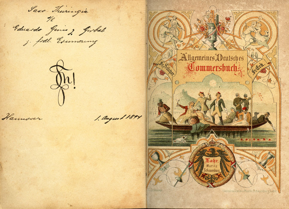 Cancionero estudiantil alemán con algunas canciones en latín. Schauenburg, 1851