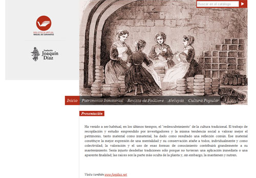 En virtud del convenio firmado entre la Fundación y la Biblioteca Virtual Miguel de Cervantes, esta institución abre un portal dedicado a cuatro de los principales temas que interesan a los estudiosos de la cultura tradicional: la cultura popular, la imagen popular (aleluyas y estampas), el patrimonio inmaterial y la difusión de la tradición (Revista de Folklore).