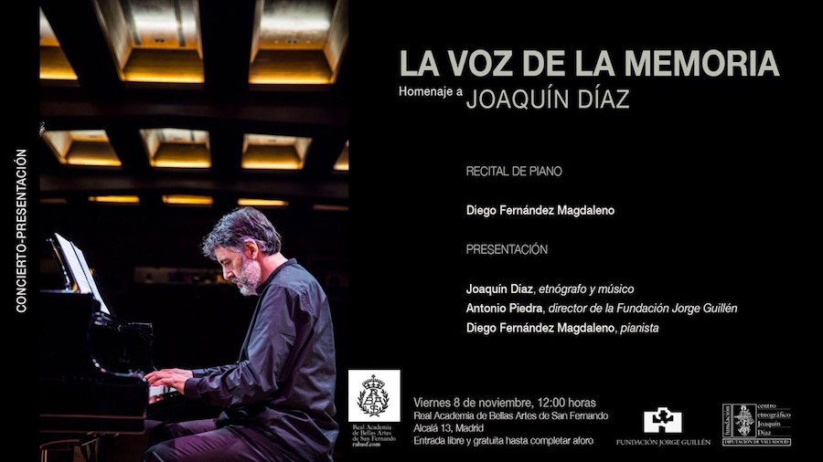 La Real Academia acoge la presentación del disco del pianista Diego Fernández Magdaleno, editado por la Fundación Jorge Guillén, en homenaje al músico y etnógrafo Joaquín Díaz.