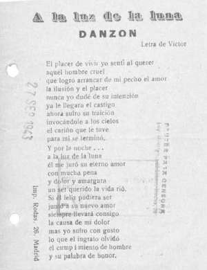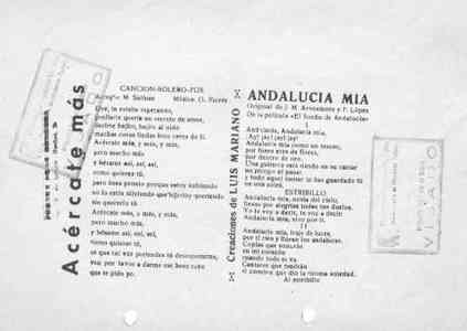 Observaciones: Detrás de la publicidad de dicho anuncio, han escrito a mano la letra de la canción que se indica en otros temas
