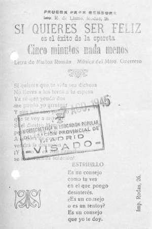 Observaciones: Hay cinco ejemplares de la misma canción con distintas fechas de autorización y diferentes letras de las estrofas