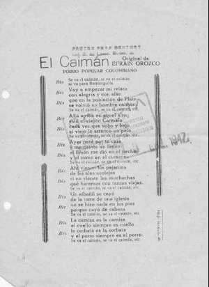 Incipits: Se va el caimán, se va el caimán