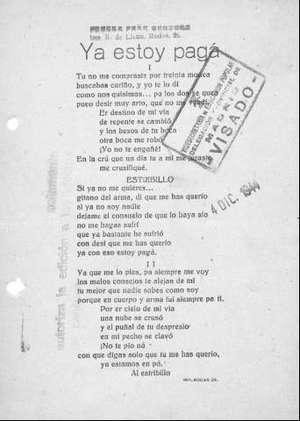 Incipits: Ya sé que tienes novio, / Buenas noches, mi amor