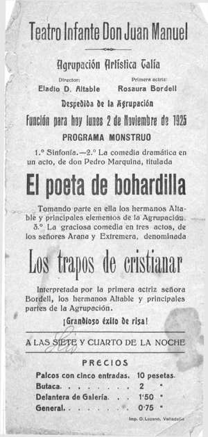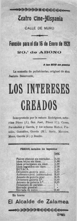 Observaciones: Incluye la lista de precios de butacas. Hay tres ejemplares.