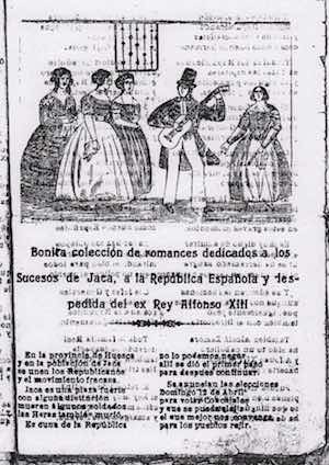 Incipits: En la provincia de Huesca / y en la población de Jaca / se unen los Republicanos / y el movimento fracasa