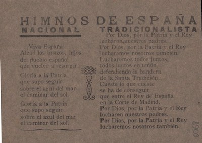 Otros datos: Himnos de España (Nacional y Tradicionalista)