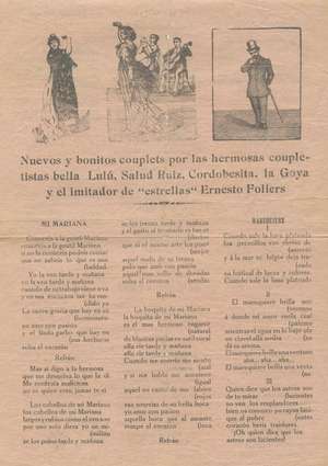 Otros datos: Género ínfimo. Tango de los lunares / Enseñanza libre, tango de las ligas