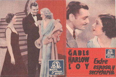 Autor: Intérpretes: Clark Gable. Jean Harlow. Myrna Loy. Mary Robson. James Stewart. George Barbier. Hobart Cavanaugh. Director: Clarence Brown. Productor Hunt Stromberg.