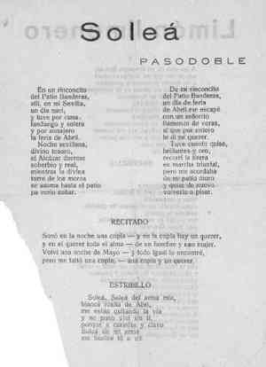 Incipits: Dios mis afanes bendijo / Vuerve a andá er peregrino / Yo he nasío pa triunfá / Por lo nogro de tu sino / Mare a quien tanto he ofendío / Es una dansa moruna / Que tu me mates o no / Me creo el amo del mundo