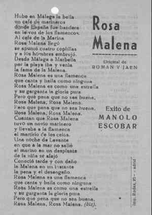 Observaciones: Habanera bonita es de la película "Un beso en el Puerto". Hay dos ejamplares, el otro verde y cons ello de la imprenta y de la Delegación Provincial de Información y Turismo