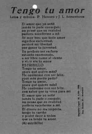 Incipits: Tengo / Más, mucho más / Para tí yo soy / Yo recuerdo aquel día